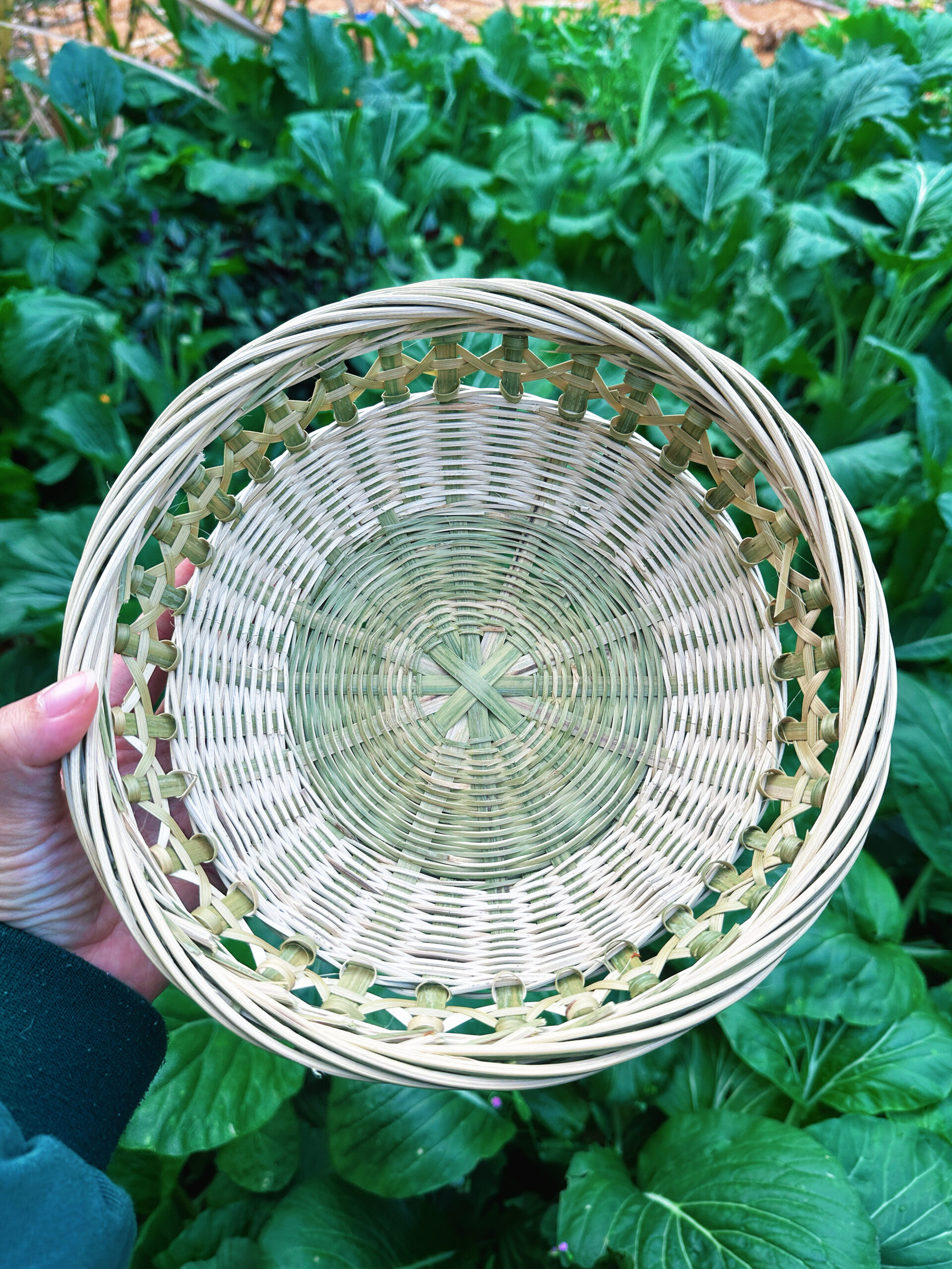 **Craftsmanship:** Purely handmade (elevated base weave, openwork technique); no paint or adhesives used.