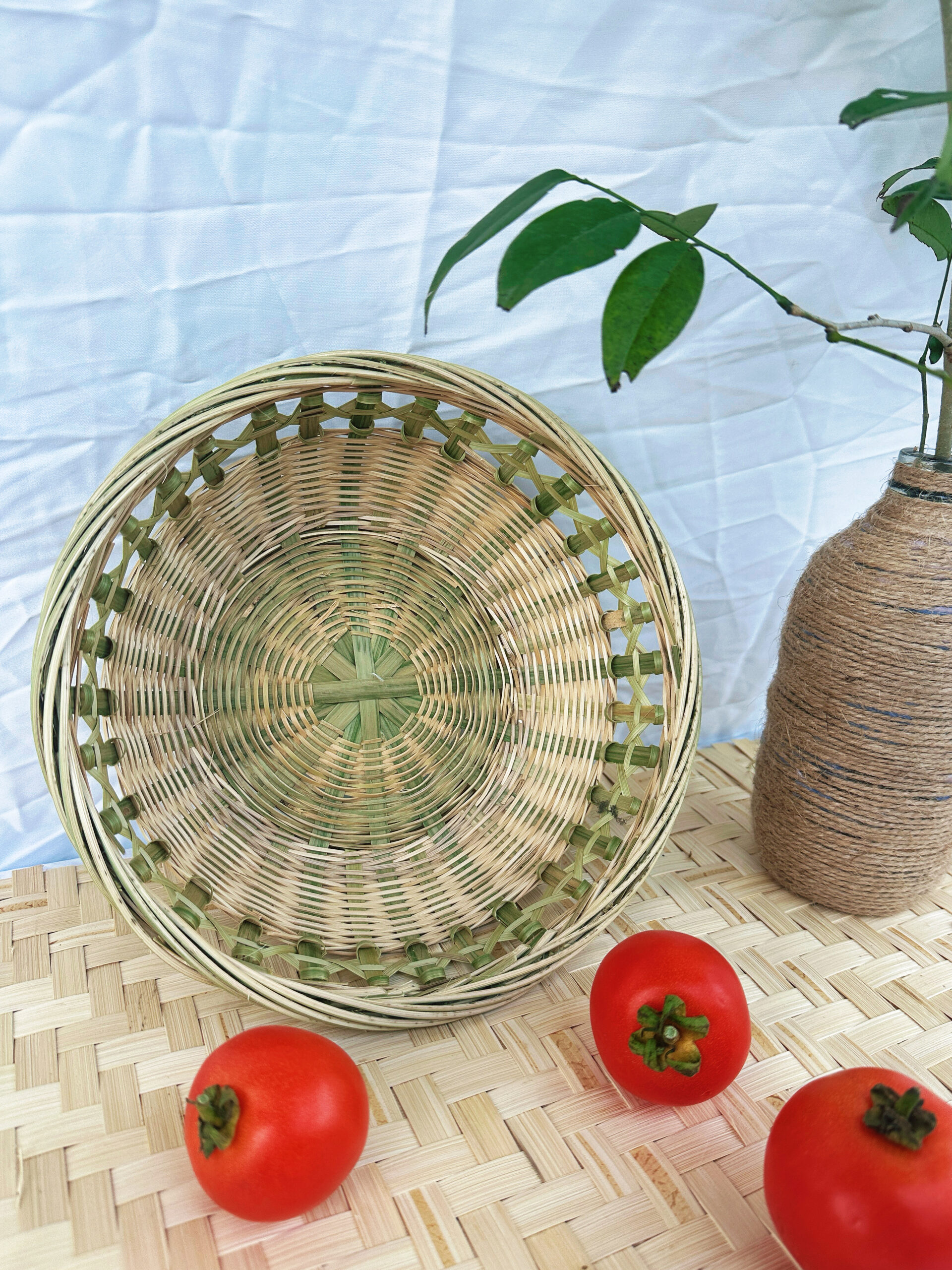 This small, round, hand-woven bamboo basket is crafted entirely by hand—from the splitting of the bamboo strips to the final weave—by experienced artisans. More than just a practical vessel for daily life, it is a work of art that embodies the warmth and spirit of traditional craftsmanship. The basket is fashioned from natural green bamboo; as time passes and it is used, the bamboo’s hue will gradually shift from green to a mellow golden-yellow, taking on an increasingly warm, rustic, and antique texture.